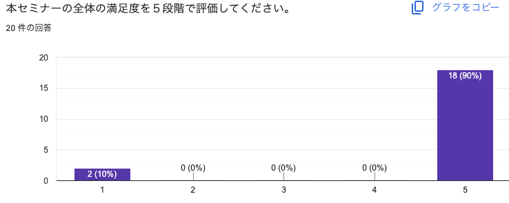 - 本セミナーの全体の満足度を5段階で評価してください。